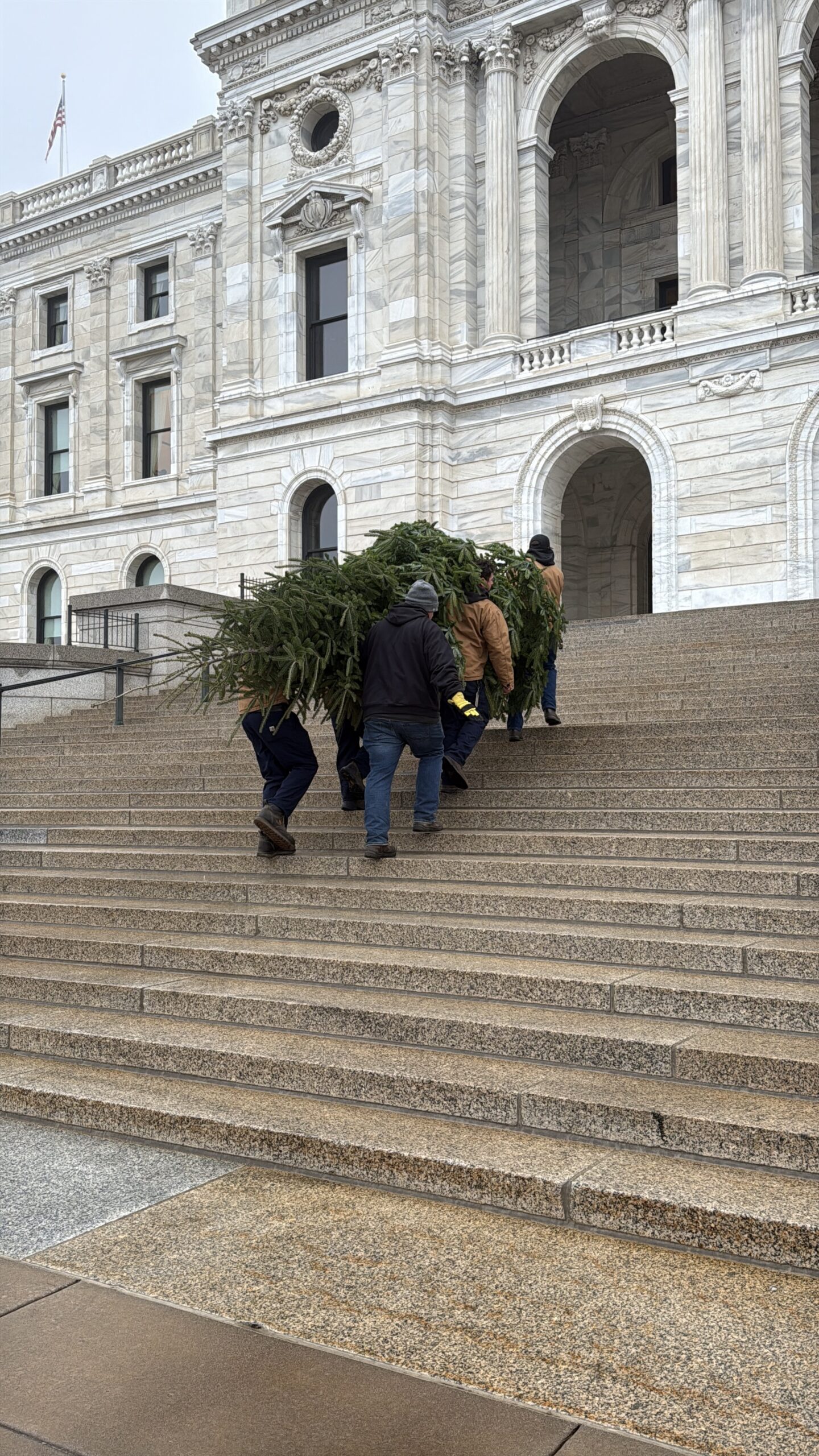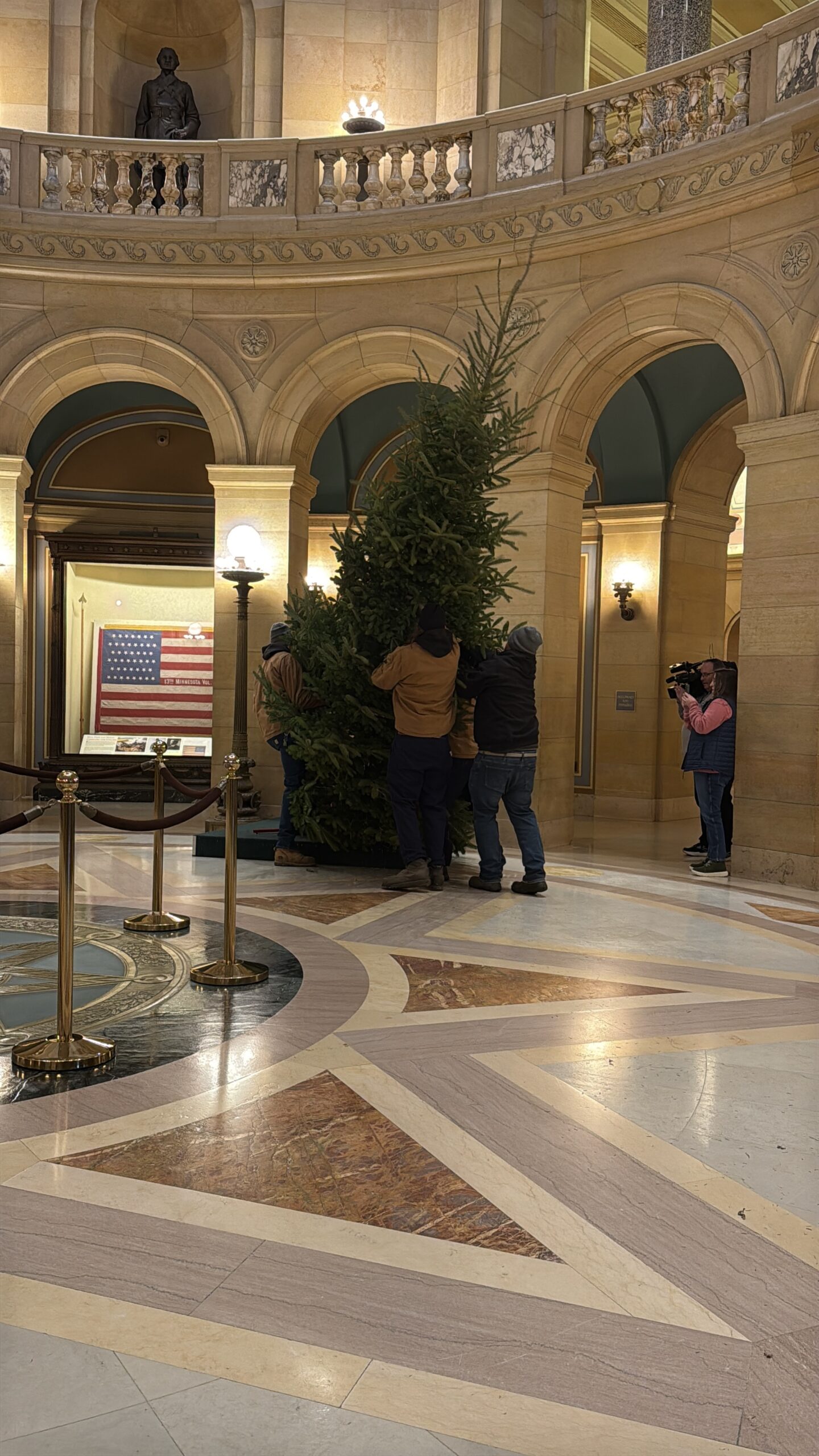 Turck’s Trees delivered a 17 foot balsam fir that they grew. It was set up in the Rotunda by Capitol staff where it will be decorated on December 1st and remain on public view until after Christmas. It is a long-standing Minnesota tradition, but the first time for Turck’s Trees.